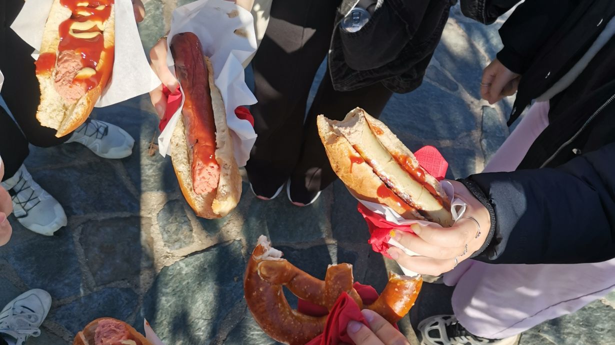 Es gab viel Schmuck, schöne Holzarbeiten, Gestricktes und Gewebtes in den Auslagen, dazu wurden tolle Kunstwerke aus Altpapier, aber auch Spielzeug, Gebäck, selbstgemachte Marmeladen und Weihnachtsstollen verkauft. Auch die wunderschönen Adventskränze und Gestecke wurden wieder angeboten. Um 11 Uhr bereicherte der Kinderchor der Deutschen Schule unter Leitung von Frau Mastrantoni das Programm, zu dem auch der Weihnachtsmann applaudierte und schnell allen Sängerinnen und Sängern noch eine Süßigkeit zusteckte. Der Bestand des reich ausgestatteten Kuchenbuffets schmolz schnell dahin. Was gab es da nicht alles für Torten, Kuchen und Feingebäck… Draußen wurden Waffeln gebacken, Würste gegrillt und Fleischkäsewecken verspeist. Leider waren die sonst so gern verzehrten Suppen diesmal nicht zu haben, weil die Hersteller kurz zuvor erkrankt waren. Gegen 16 Uhr war das Fest dann schon wieder um. Es wurde zusammengepackt, abgebaut und aufgeräumt. Dank vieler freiwilliger Helferinnen und Helfer ging auch das gut. Wir danken nochmals herzlich den Verantwortlichen Leitern der Deutschen Schule, dass wir den Basar wieder in der Aula und das Kinderprogramm in der Grundschule durchführen durften. Danke auch an alle Schülerinnen und Schüler, die mitgeholfen haben, Tische, Bänke und Stühle ins Foyer zu tragen. Vielen Dank auch Konsulin Frank, die wieder den Basar begleitete und besonderer Dank gilt nochmals allen freiwilligen Helferinnen und Helfern, die so viel Zeit und teilweise auch Geld eingesetzt haben, damit unser Basar wieder ein voller Erfolg werden konnte.