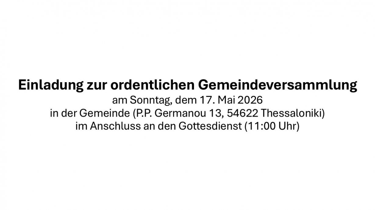 Mitten im Herzen von Griechenlands zweitgrößter Stadt, in einer belebten Geschäftsstraße, liegen die Gemeinderäume der Evangelischen Kirche deutscher Sprache. Gottesdienste und Gesprächsrunden gehören ebenso zu unseren Angeboten wie ein hohes soziales Engagement. Hier erfahren Menschen unabhängig ihrer Religionszugehörigkeit, Kultur und Nationalität praktische Lebenshilfe und seelsorgerliche Begleitung.