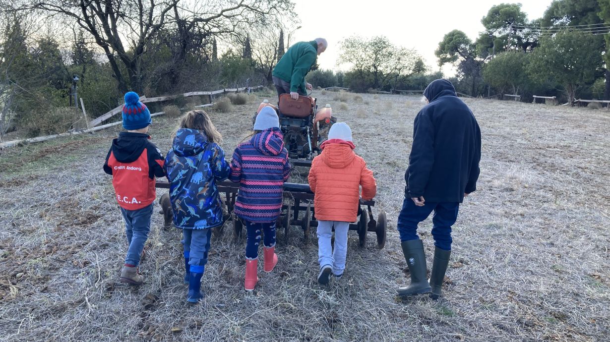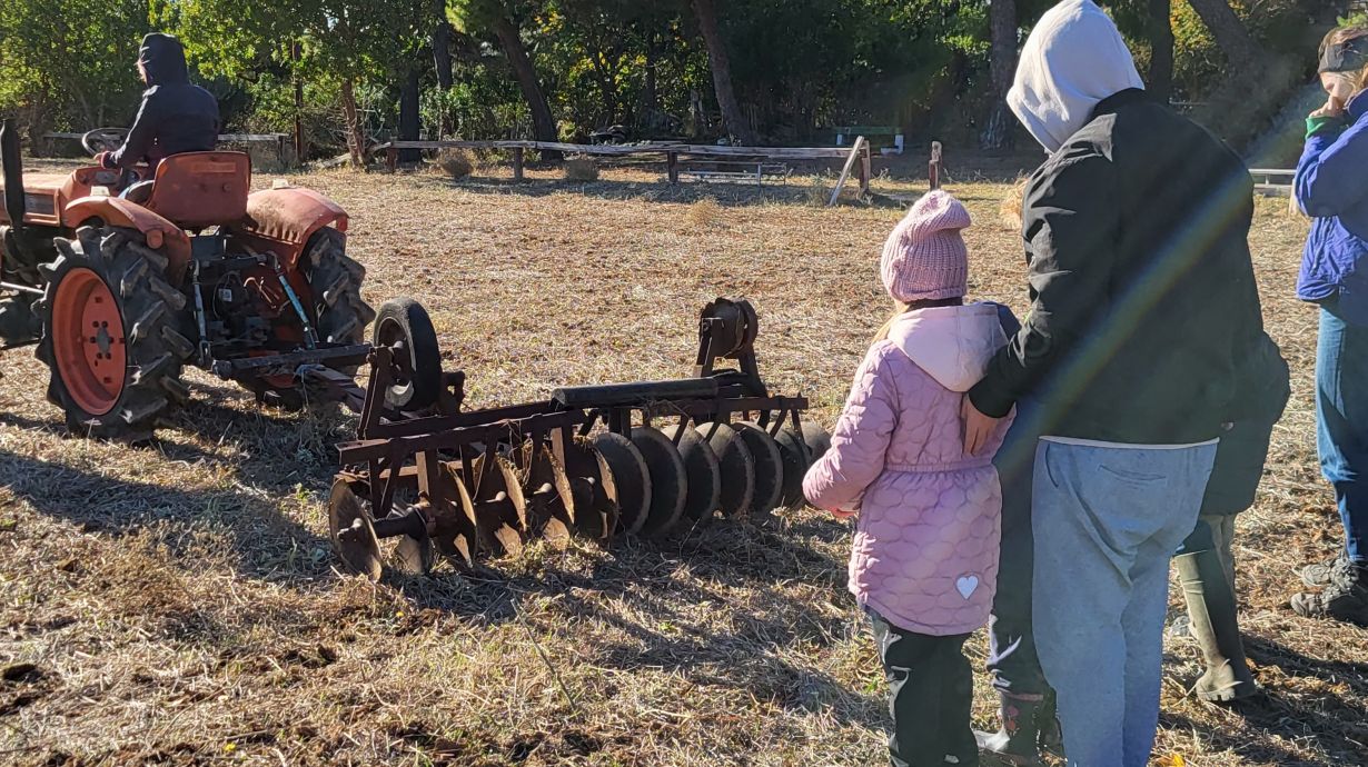 Am Anfang wurden von den Kindern Wünsche für das spätere Baumpflanzprojekt verfasst. Danach bekamen sie die Möglichkeit selbst Erde in kleinen Töpfen zu bearbeiten und diese zu bepflanzen. Nachdem wir die Hof-Rallye beendet haben, wurde die Gruppe aufgeteilt und einige der Kinder haben die Suppe vorbereitet und andere konnten sich an das Apfelbasteln aus Pappe machen, um diese als Andenken mitzunehmen. Während die Suppe kochte, startete das Baumeinpflanzprojekt und die Kinder konnten trotz des Windes ihre Wünsche an den Baum hängen. Als besonderes Highlight diente die Rundfahrt mit dem Traktor und das dazugehörige Säen. Während Beatrice Mann Dimitri den Traktor mit dem Pflug fuhr, durften die Kinder hinter dem Pflug Samen säen. Auch nutzten einige Kinder die Chance, selber Traktor zu fahren, was bei Jung und Alt für viel Freude sorgte. Zum Abschluss wurde die Suppe genüsslich mit Eltern, Kindern und den Mitarbeitenden gegessen.