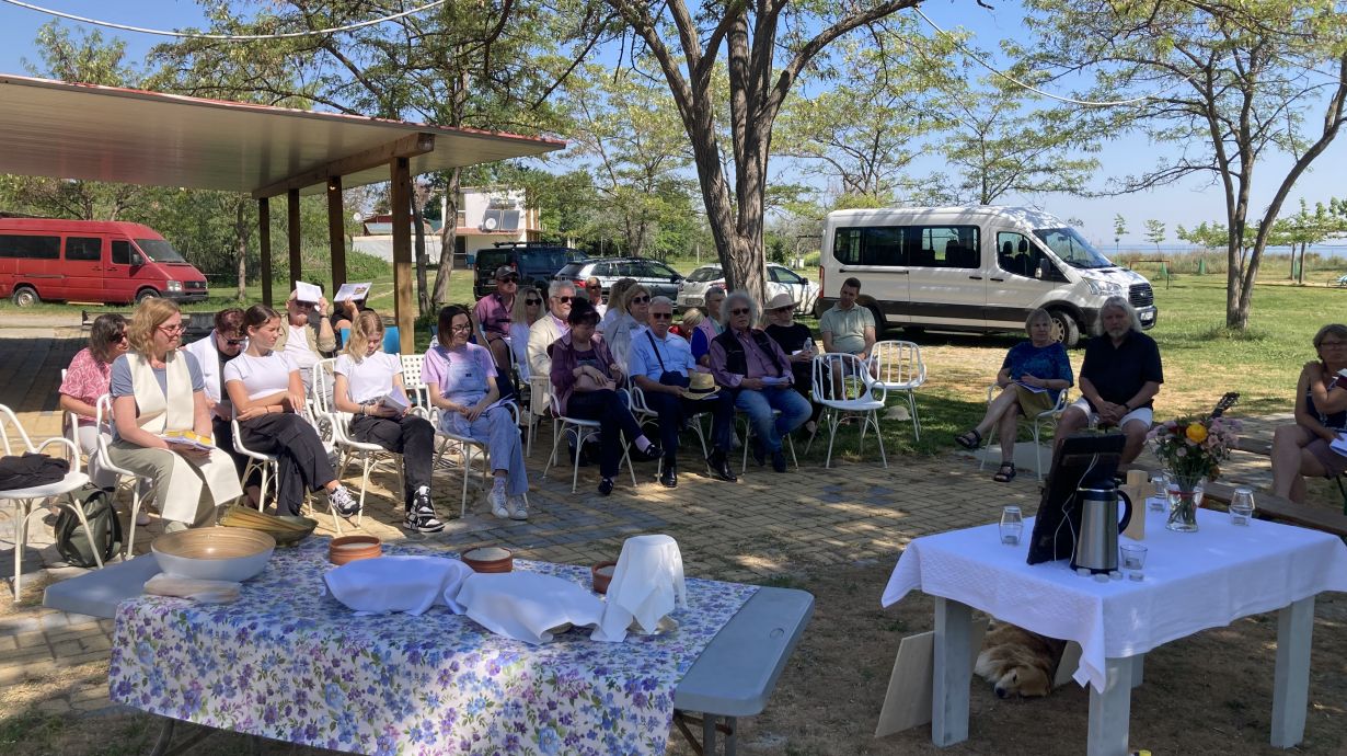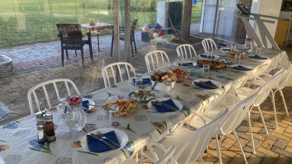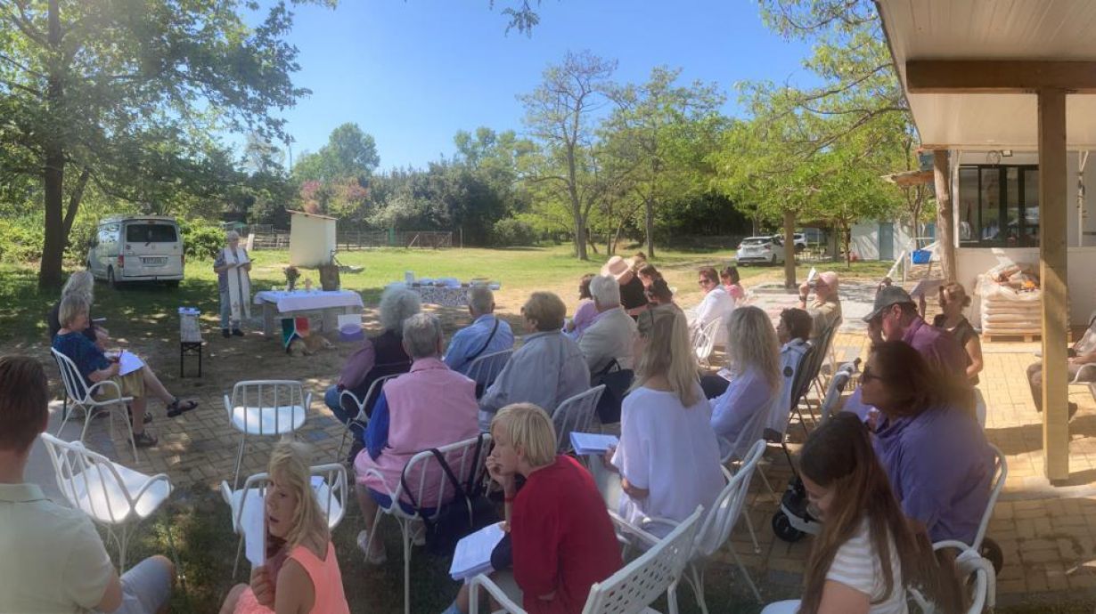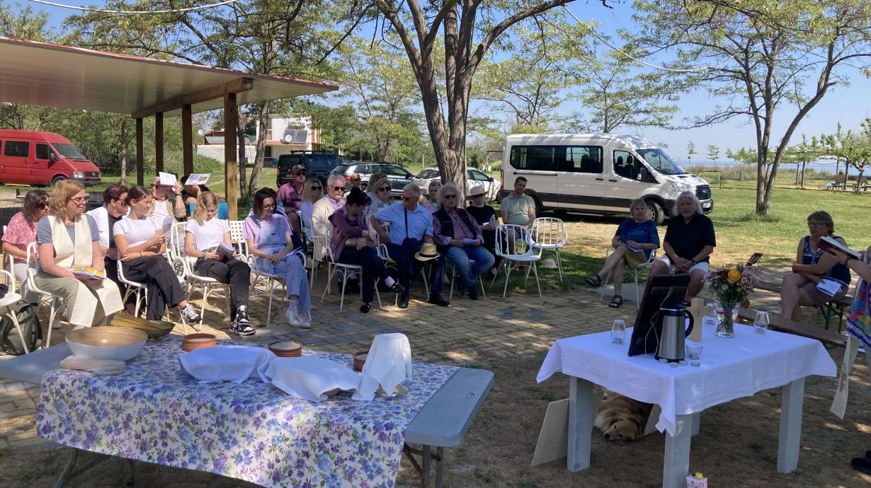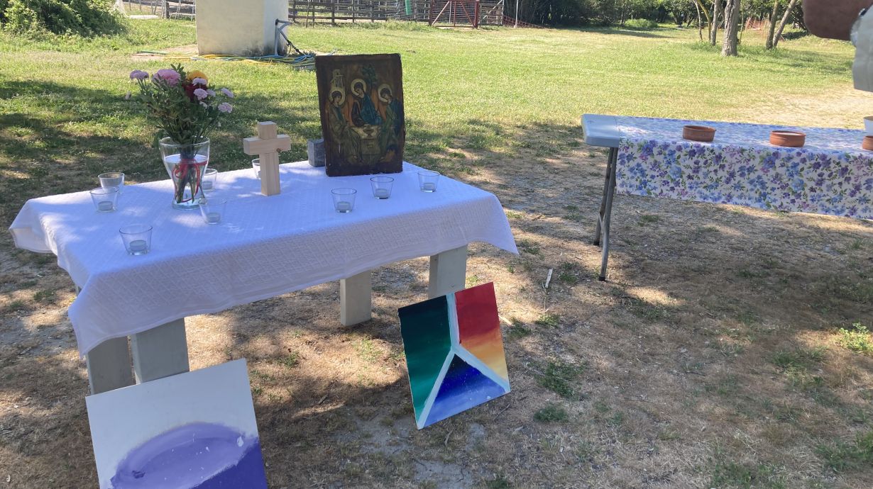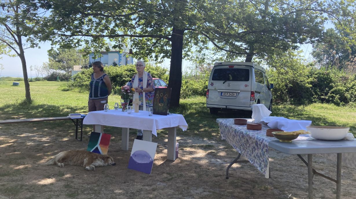 Sonntagmorgen, nach dem Frühstück, bereiteten Aram, Clara, Amelie und Helena den Altar vor. Zum Gottesdienst am Alkyona Beach besuchten uns Gemeindemitglieder aus Katerini, aus Thessaloniki und die Eltern der Konfirmandinnen. Nach dem Gottesdienst gab es noch frisch gebackenen Kuchen von Peter Seiffert und wir konnten den warmen Vormittag gemeinsam bei kühlem Wasser ausklingen lassen. Es war eine sehr schön und wir danken besonders Karin Bohland und ihrem Team, dafür dass wir die Möglichkeit hatten, die Freizeit auf ihrem Gelände stattfinden zu lassen und für ihre Gastfreundschaft.