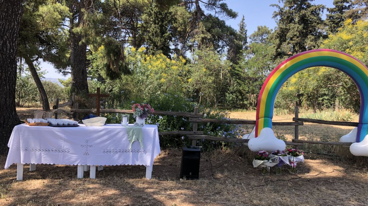 Den Konfirmationsgottesdienst veranstalteten wir auf der Öko-Farm in Thermi zum Glück im Schatten der Bäume.