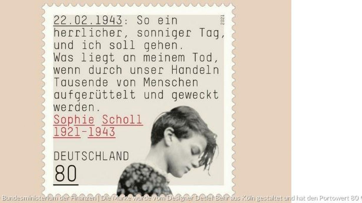 Am 9. Mai 1921 wurde Sophie Scholl in Forchtenberg/Baden-Württemberg geboren.